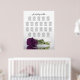 Cet élégant tableau de 22 places mariage présente une belle photo d'un seul rose de couleur prune ou aubergine réfléchissant dans l'eau avec des vagues et des ondulations. Le titre dit "s'il vous plaît trouvez votre table" dans la calligraphie de script dentée. Il y a de la place pour les noms des couples et la date du mariage. Ce tableau a des affectations de table pour 220 invités 10 personnes par table.