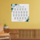 Ajoutez charme et raffinement à votre réception de mariage avec ce magnifique tableau de sièges mariage, orné d'un boho rustique design floral chic. Avec des places assises pouvant accueillir jusqu'à 220 personnes, chaque table de 10 places, ce tableau présente un mélange rustique de roses et de fleurs dans les tons turquoises, turquoise, aqua et cyan, gracieusement entrelacés de sprigs d'eucalyptus feuilles et de verdure du jardin. L'élégant titre de calligraphie de script ajoute une touche de glamour, créant une atmosphère sophistiquée pour votre journée spéciale, et il y a de la place pour les noms du couple et la date mariage en bas.