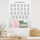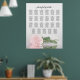 Ce tableau de 23 sièges mariages de table présente une magnifique image d'une rose rose rose rousse à longue tige allongée sur son côté réfléchissant dans l'eau avec des vagues et des ondulations. Le titre dit "s'il vous plaît trouvez votre table" dans la calligraphie de script dentée. Il y a de la place pour les noms des couples et la date du mariage. Ce tableau a des affectations de table pour 230 invités 10 personnes par table.
