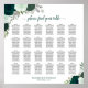 Ce charmant tableau de 24 places de mariage peut accueillir 240 convives, avec un agencement traditionnel de 10 places par table. Le design dégage une élégance bohème rustique, avec des roses d'aquarelle délicats dans les tons vert émeraude et sauge, entourés de sprigs d'eucalyptus feuilles, fleurs de lavande et verdure du jardin. En plus de faciliter la recherche des tables qui vous sont assignées, ce tableau de sièges ajoute une touche de sophistication et de personnalité à votre réception de mariage.