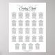 Faites de votre réception de mariage une belle avec ce tableau de 24 places. Il présente un design simple mais élégant avec du texte noir sur un arrière - plan blanc avec une bordure florale en faux feuille argent. Ce graphique montre les affectations de table afin que vos invités aient un temps facile à trouver la bonne table.