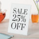 Noir et blanc moderne 25% de réduction Vente Signal adapté aux tablettes ou aux comptoirs dans les magasins de détail, boutiques, cabines d'artisanat, etc.