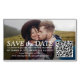 Annoncez la joyeuse nouvelle de vos fiançailles et de votre mariage imminent avec des magnets personnalisés uniques pour annoncer la date à retenir. La photo, le code QR scannable et tout le texte de ce modèle sont faciles à personnaliser. Le dos magnétique et le format de carte de visite facilitent l'affichage pour les amis et la famille. Vendus en paquets à un prix abordable, ces magnets sont une option chic pour la mariée avec un budget limité. (CONSEIL DE PLACEMENT D'IMAGE : un moyen facile de centrer une photo exactement comme vous le souhaitez est de la rogner avant de la télécharger sur le site Web de Zazzle.) Le design moderne noir et blanc présente une photo du couple de fiancés superposée d'une typographie classique minimale. En scannant le code QR avec leur téléphone, les invités sont directement envoyés sur le site Web du mariage où ils peuvent voir tous les détails importants et se connecter avec vous en ligne. Cette invitation magnétique élégante fait une annonce élégante pour la célébration de
