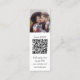 Cet invitation est de taille minuscule mais il est grand par sa simplicité moderne. Famille d'Invitations et amis à une célébration mariage tout simple et élégante avec une invitation tout-en-un 1"x3" unique avec code QR RSVP. Avec une seule petite carte, vous pouvez accueillir des invités mariages invitations à votre prochaine fête spéciale, fournir toutes les informations importantes (comme les directions, le registre, les chambres d'hôtel), et laisser le site Web organiser les rsvp's. Aucune carte de boîtier supplémentaire n'est nécessaire. L'image et toute la formulation de ce modèle sont simples à personnaliser. La forme rectangulaire verticale étroite en fait un petit signet idéal. Le design minimaliste moderne en noir et blanc comprend une photo du couple engagé, 1 code QR personnalisé, et une typographie manuscrite décontractée et élégante. En scannant un code QR avec un appareil photo, les clients sont envoyés directement sur le site du mariage pour plus de détails et pour répondre à l'invitation. Un processus de réponse en ligne réduit le risque que les cartes soient perdues dans le courrier. Vous pouvez également demander des renseignements plus précis, tels que les choix de repas, les allergies alimentaires et les demandes de chant. Cette invitation contemporaine apporte un complément chic à votre célébration de la journée spéciale à venir. Félicitations à la mariée et au marié !
