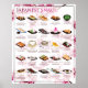 Quand on pense aux "snacks", ce qui nous vient à l'esprit est les snacks scellés dans un emballage en plastique et vous pouvez facilement les trouver dans un supermarché. Ce qui est intéressant, c'est que de nombreux snacks japonais sont encore fraîchement préparés comme des street food ou des petits snacks. Certains snacks populaires que vous pouvez facilement trouver au Japon sont omusubi rizballs, mochi, dango, takoyaki, taiyaki et bien d'autres goodies japonaises! Sur cette affiche, on trouve 25 illustrations japonaises de snacks/street food. Chaque illustration a été dessinée à partir de la vraie nourriture. TAILLE : 16,0 x 20,0 pouces (40,64 x 50,80 cm, 406,4 x 508,0 mm) ARRIÈRE - PLAN : Trouvez d'autres arrière - plans dans notre magasin!