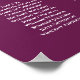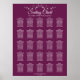 Faites de votre réception de mariage une belle avec ce tableau de sièges. Il présente un design simple mais élégant avec du texte blanc sur un magenta, prune violet, cassis, ou arrière - plan couleur baies avec une bordure florale en faux feuille argent. Ce graphique montre les affectations de table afin que vos invités aient un temps facile à trouver la bonne table.