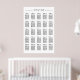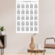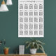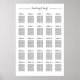 Jusqu'à 25 Tableaux, présentés par numéro de tableau, et non par nom, avec jusqu'à 12 personnes par table. Un simple tableau de sièges en noir et blanc ; cliquez sur "customiser" pour déplacer des colonnes, modifier les polices, les couleurs, la couleur arrière - plan ou la taille de l'affiche. Texte blanc sur les versions colorées également disponible. Cliquez et faites glisser sur les tables (en commençant par la page) pour déplacer plusieurs tables à la fois.