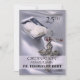 Ajoutez votre nom à l'avant de cette magnifique invitation du 25ème anniversaire d'Ordination. Des motifs argentés avec des hôtes et des croix ornées sont posés sur un tissu satiné. Customisez l'intérieur avec vos coordonnées personnelles pour célébrer votre jubilé d'argent.