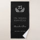 Une couronne de laurier avec le nombre d'années de mariage. Personnalisez et ajoutez vos noms et une date. Arrière - plan noir, texte blanc.