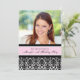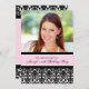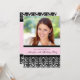 Les 25èmes invitations de fête d'anniversaire de photo faite sur commande au pastel léger élégant et joli rougissent rose, motif floral classique noir et blanc de damassé. Ajoutez votre nom, photo, et détails de partie pour 25ème une invitation unique et élégante de fête d'anniversaire.
