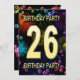 Ajoutez un nom pour customiser cette invitation unique. 26e anniversaire invitation de fête avec feux d'artifice et bulles. Ajoutez vos détails à l'intérieur pour créer un invitation amusant parfait. Allumez le ciel avec ces feux d'artifice glorieux. Une invitation à une fête d'anniversaire qui a du style et beaucoup de plaisir.