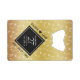 Célébrez le 27e anniversaire du mariage de musique avec cet ouvre-bouteille élégant! Elégant lettrage noir et blanc avec confettis de note musicale sur un arrière - plan de feuille d'or ajoutent une touche mémorable à cette occasion spéciale et à cette étape extraordinaire. Personnalisez avec les noms du couple et les années de mariage. Design © W.H. Sim, Tous droits réservés. Voir plus sur zazzle.com/expressionsoccasions