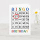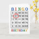 27ème Carte d'anniversaire. Dites le joyeux anniversaire à un joueur de bingo-test avec une carte de bingo-test. L'âge est entouré en rouge. Un joueur fou de bingo-test obtiendra un coup-de-pied énorme hors de cette carte ! Copyright Norma Cornes.