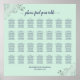 Ce magnifique tableau de sièges mariage présente un design simple mais élégant avec du texte bleu marine sur un arrière - plan vert clair ou de couleur néo-menthe. Le titre est écrit en calligraphie script lettering et dit : s'il vous plaît trouver votre table. Le graphique est décoré d'un faux film floral frileux argenté gris argenté dans les coins. Contient des sièges pour 28 tables à 10 personnes par table ou 280 personnes.