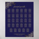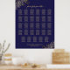 Ce magnifique tableau de sièges mariage présente un design simple mais élégant avec du texte en or sur un arrière - plan bleu marine. Il y a des fraises fantaisie or ou floral fantaisie dans les coins et un titre de calligraphie de script "s'il vous plaît trouver votre table." Le tableau a des affectations de table pour 290 invités à 29 tables (10 places par table).