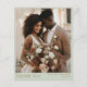Une carte de remerciements simple et élégante présente un texte de couleur or raffiné sur un arrière - plan vert pâle et serein. La mise en page présente une grande photo de portrait à l'avant et une photo de paysage à l'arrière, créant un look intemporel et sophistiqué. Le dos comprend également de l'espace pour votre message personnel, ce qui facilite le partage de votre gratitude dans le style. Parfait pour remercier les clients mariages et préserver les souvenirs de votre journée spéciale.