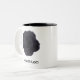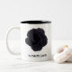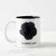 Tasse bilatérale avec le logo de bande sur un rose de côté et de noir avec l'expression gaélique "il est bon avec moi" de l'autre.