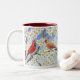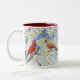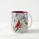 Conception originale de beaux-arts des cardinaux masculins et féminins dans un pommier par l'illustrateur/concepteur Carolyn McFann du studio de ronronnement de deux chats sur une tasse de café de qualité pour des amants d'oiseau.