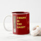 la tasse 15oz, intérieur rouge foncé… le "Christ est la lumière", "dans lui là n'est aucune obscurité….", "promenade messages dans son amour" sur cette tasse avec le coeur de Sacret de l'image de Jésus. Changez les bougies sur chaque extrémité de la tasse. Juin est le mois du coeur sacré de Jésus"