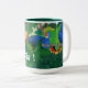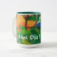 Dites bonjour dans le Portugais avec cette tasse colorée comportant le collage de coupe-papier de l'artiste international Kitty Harvill de faune. Dame Caroxa, un perroquet Rouge-coupé la queue mis en danger de la forêt tropicale atlantique du Brésil salue le jour et ainsi vous ! Perfectionnez pour l'amant d'oiseau ou de nature.