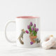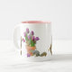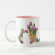 Les écureuils de Fox sélectionnent les tulipes roses sur cette tasse de printemps.