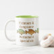Une tasse de retraite avec six natation de poissons à travers cette tasse avec les mots "Fishmore et Campsome, spécialistes en retraite". Perfectionnez pour nouvellement la personne retraitée.