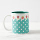 Illustré avec des fleurs et des fraises de kawaii sur une sarcelle d'hiver et un arrière - plan blanc de pois cette tasse apportera un bon sentiment pendant vos matins et un décor mignon à votre cuisine !