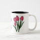 La tasse gaie indique des roches de grand-maman et a les tulipes roses.