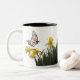 Les fleurs magnifiques de jonquille et les papillons de monarque jaunes et blancs pilotant la peinture numérique de la photographie sont sur cette tasse.