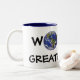 La plus grande tasse de la maman du monde comportant notre art original de la terre de planète remplaçant l'O dans la plus grande maman du monde sont les cadeaux parfaits pour le jour de mère, l'anniversaire de la maman, le Noël, ou quand vous voulez montrer votre maman, maman, mère, maman, maman, la PA combien vous l'aimez. Dites-lui qu'elle veut dire le monde à vous avec notre tasse originale de la terre de planète.