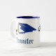 Belle tasse de cadeau pour votre aîné de graduation de favori, avec les graphiques élégants d'un diplôme et d'un casquette bleu de taloche. Le texte graphique bleu lit la classe de, et le texte personnalisable bleu lit l'année et le nom du diplômé. Personnalisez pour vous-même ou votre diplômé préféré.