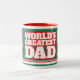 Le plus grand papa du monde a coutume des photos tasse. Ajoutez deux de vos propres photos spéciales ou images de papa ou de ses enfants à cette tasse de style sportif audacieuse en rouge, blanc et vert vif. Conception par Sarah Trett.