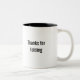 Partagez votre enthousiasme pour plier avec vos propres des "mercis" de tasse se pliante. Tasse à deux tons noire et blanche avec le message sur de logo le dos avant et foldfactory dessus.