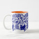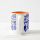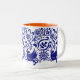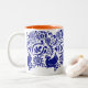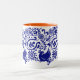Cette tasse bleue et blanche de bon goût, avec un intérieur orange, a été inspirée par russe et l'art populaire hongrois et conçu par le Maine a basé l'artiste Katharine Woodman-Maynard.