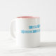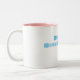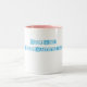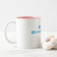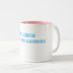 Une tasse blanche avec un intérieur rose comportant l'expression "nouvelle caféine du besoin de maman" dans les caractères gras.