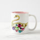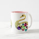 Roses à la mode et le blanc deux modifient la tonalité la tasse avec deux mignons, lunatiques et beaux paons numériques colorés d'or de bijoux. Un cadeau élégant, élégant, chic, girly de mode pour des femmes, adolescentes et enfants et n'importe qui qui aiment des paons. Notez svp : Tous les produits sur le site Web de Zazzle ont des images imprimées d'appartement. Si vous avez besoin de n'importe quelle aide customisant votre produit svp me contactez par mon magasin et je serai heureux d'aider.