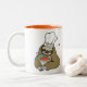 Image de la paresse dans le casquette du chef tenant un bol de soupe à tomate avec une bulle d'expression de coeur d'amour, imprimé sur la tasse personnalisable à deux tons. Excellent comme cadeau bon d'obtention pour les personnes qui comme les paresses et la soupe.