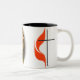 Tasse de café d'Église Méthodiste Unie avec la croix tissu-drapée. La photo de la croix a été prise le long de la plage de Shi-Shi sur le coin du nord-ouest de la péninsule olympique dans l'état de Washington En 2006.