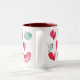 La tasse vient dans 4 versions différentes de coeurs ! Fait un grand ensemble ! Pour personnaliser, frappez le bouton de personnaliser, remettez à la côte les coeurs et ajoutez un certain texte à un côté.