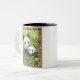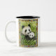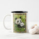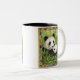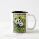 Panda et petit adorable entouré de bambou luxuriant et bordure colorée