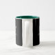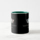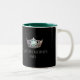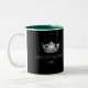 Une couronne argentée brillante avec une copie de point culminant de vert vert a porté l'avant et le centre en équilibre de chaque côté de cette tasse de café/cacao. Montré sur une tasse noire et blanche avec un texte gris intérieur et coordonné vert-foncé. Customisez votre intérieur et personnalisez le texte témoin à vos propres. Montré comme Mlle Des Moines 1982.