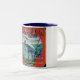 C'est une grande tasse avec un étiquette antique de caisse pour le fruit bleu de héron comprenant des mandarines, des pamplemousses, des oranges et plus. Image extraordinaire de héron.