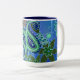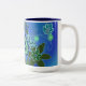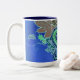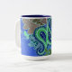 Les rouleaux de Paisley, les jonquilles stylisées et le feuille décorent cette tasse dans un choix de bleus et de verts. D'un dessin inspiré par des conceptions de mehndi de henné, cette tasse est une expression à main levée de mystère et de bonheur pour la tasse de matin.