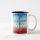 Cette tasse comporte une conception de croix d'aquarelle qui tire des caractéristiques artistiques de la chapelle à la base de Wesley