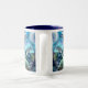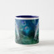 Trois dauphins, spiritueux de la danse d'intuition dans un rêve joyeux, sur une mer éclairée par la lune de bleu et de vert. Cette peinture de trois dauphins dans une bulle et entourés par une mer verte et bleue fait une belle tasse d'art. La conception est également disponible comme affiche ou copie de beaux-arts, artcard, mousepad, iPad, couverture d'iPod et d'iPhone, et d'autres articles.