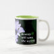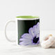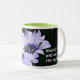 Décrites sur cette tasse sont des marguerites pourpres et une citation du romancier russe, Dostoevsky : La "beauté sauvera le monde."