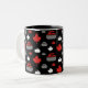 Tasse de café comportant une feuille d'érable et courbant le motif de roche en rouge, le blanc et le gris sur l'arrière - plan noir. Perfectionnez pour des bigoudis et des fans de bordage.