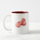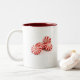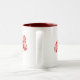 Sucreries de menthe poivrée rouges et blanches sur la tasse de café blanc avec l'intérieur rouge lumineux.