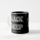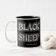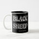 Tasse de café de moutons noirs. Mots "moutons noirs" de l'autre côté de la tasse.