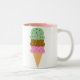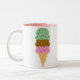 Caractéristiques de conception ce un cornet de crème glacée triple de scoop (fraise, pommes chips de chocolat blanches de chocolat et pommes chips de chocolat de menthe) sur un arrière - plan bleu-clair.
